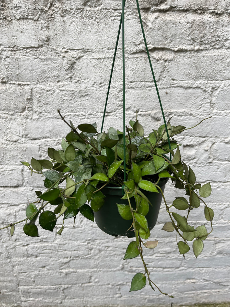 Bring subtle shimmer and trailing charm into your home with Hoya krohniana 'Eskimo', a captivating vining plant admired for its small, heart-shaped leaves dusted with silvery speckles. The thick, succulent-like foliage creates a lush, cascading effect, making it a perfect choice for hanging planters, shelves, or trellises. Its refined texture and graceful vines add a soft, elegant touch to any room, while its low-maintenance nature makes it ideal for both seasoned collectors and casual plant lovers. When happy, 'Eskimo' may reward you with clusters of sweetly scented star-shaped blooms.