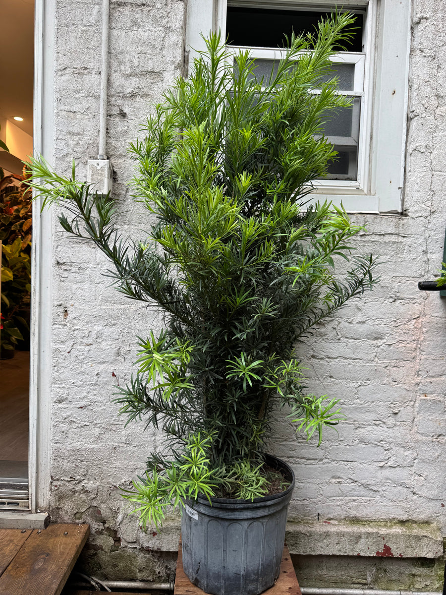 Bring structure, elegance, and timeless greenery to your outdoor landscape with Podocarpus, a refined evergreen shrub or small tree known for its soft, needle-like foliage and upright, columnar growth. Often called the Yew Pine, this versatile plant thrives in a range of climates and settings—from formal hedges and privacy screens to sculptural accents in garden beds or containers. With its clean lines and deep green color, Podocarpus adds a peaceful, polished presence to patios, entryways, and foundation plantings.