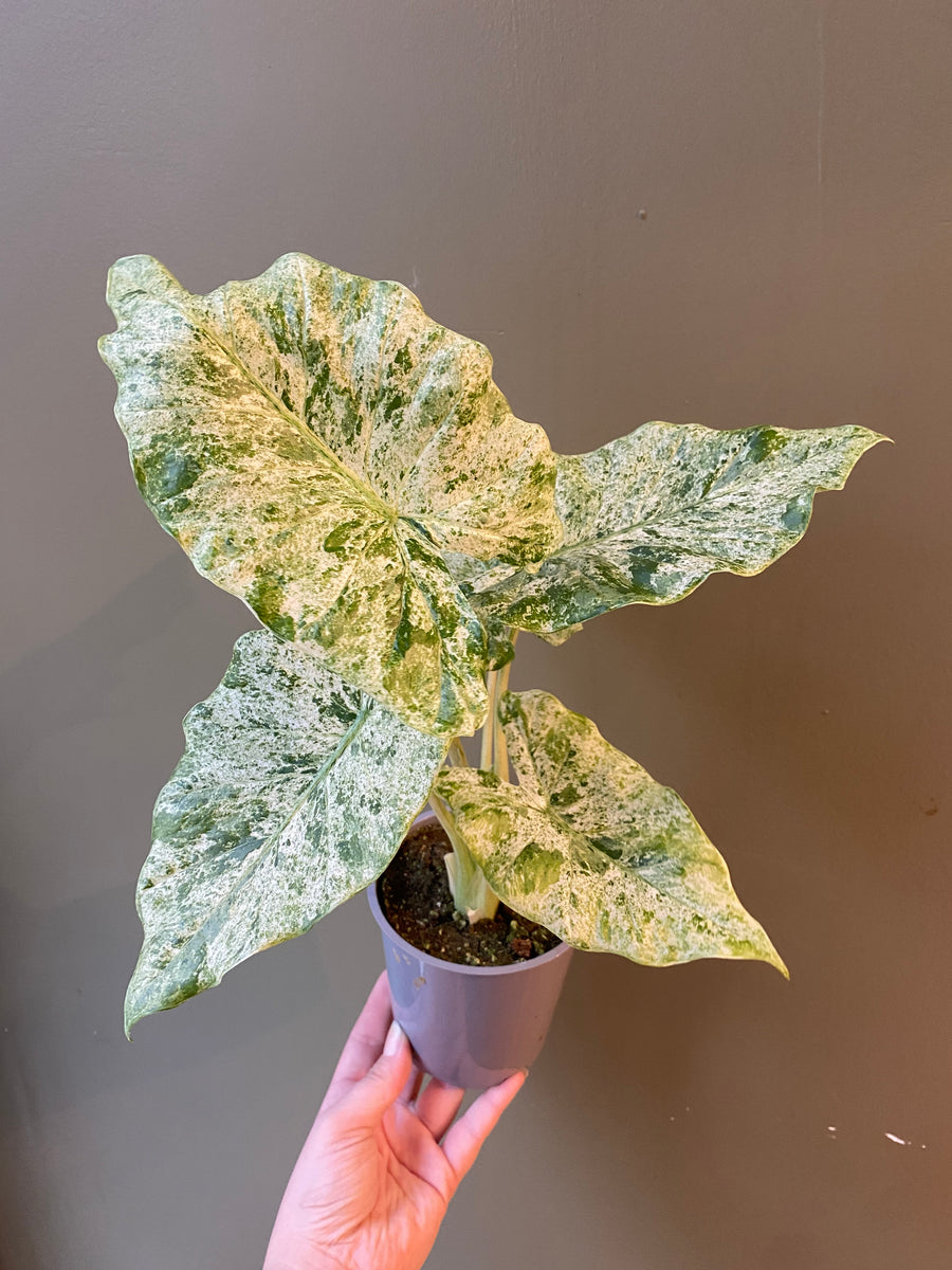 Bring bold elegance and tropical flair to your space with Alocasia odora 'Variegata,' a show-stopping houseplant known for its large, heart-shaped leaves splashed with striking white and green variegation. Each leaf is a work of art—broad, glossy, and uniquely patterned—creating an instant focal point in any room. With its architectural form and lush, exotic vibe, this plant adds drama and sophistication to bright corners, entryways, or any spot in need of a stylish statement. Alocasia odora 'Variegata' is perfect for plant lovers looking to add a bit of jungle luxury to their collection.