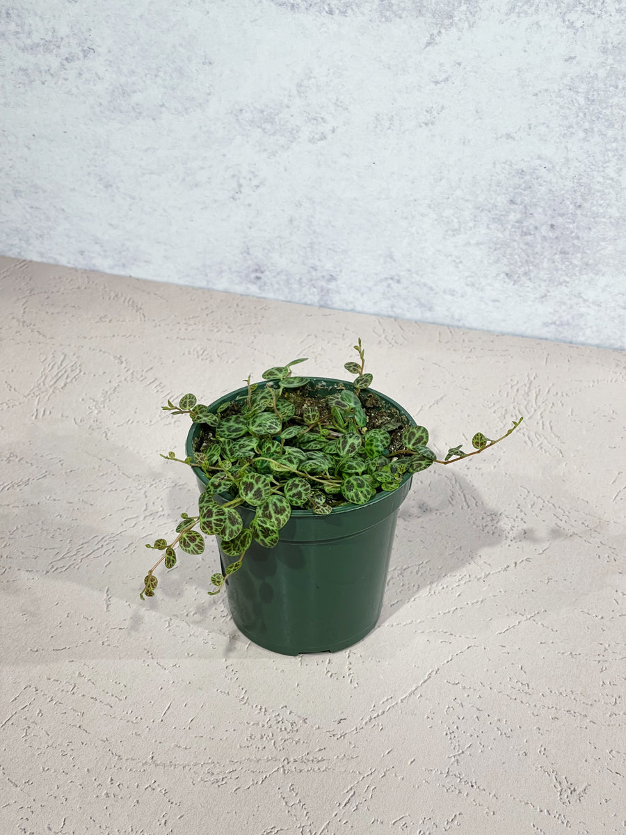 Add a whimsical touch of greenery to your space with the String of Turtles, known for its unique, small, round leaves that resemble the pattern of a turtle’s shell. This charming trailing succulent thrives in bright, indirect light and makes a lovely, low-maintenance addition to any home or office. With its striking foliage and delicate vines, the String of Turtles brings both elegance and playfulness to your space. Symbolizing growth and vitality, this plant is a perfect choice for anyone looking to add a bit of nature’s beauty without the fuss.