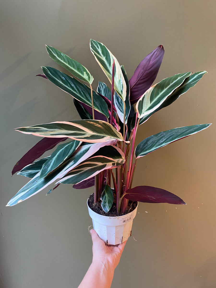 Bring vibrant color and dynamic movement to your indoor garden with the Stromanthe Triostar, a tropical beauty known for its striking variegated leaves in shades of green, cream, and pink. Its upright, arching foliage adds both texture and visual interest, while the leaves gently fold upward in the evening, creating a living, breathing display. This pet-safe plant thrives in bright, indirect light and loves a humid environment, making it perfect for bathrooms, kitchens, or any room where you want a bold, tropical accent. The Stromanthe Triostar is a show-stopping plant that infuses energy and elegance into any space.