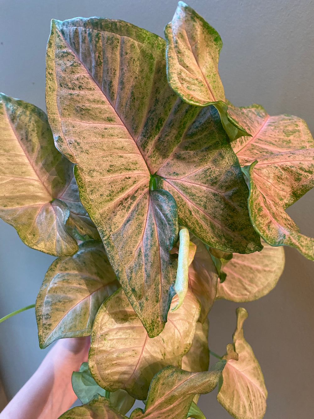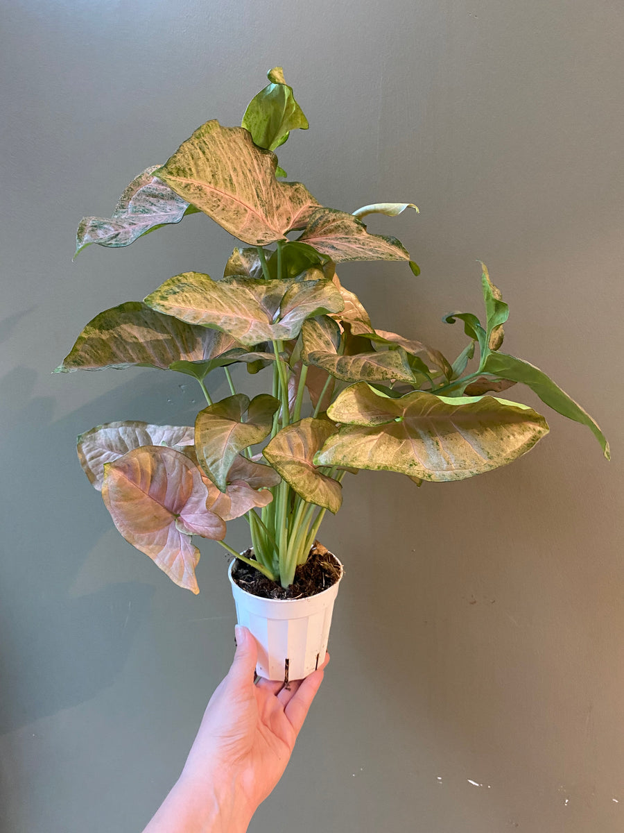 Infuse your space with a soft blush of color and dreamy texture with Syngonium 'Strawberry Cream,' a charming tropical plant prized for its delicate pink-tinged foliage. Its arrow-shaped leaves unfurl in shades of creamy blush, soft green, and warm rose—like a watercolor painting in plant form. Graceful and compact, this Syngonium adds a gentle, romantic flair to shelves, desktops, or plant groupings, making it an eye-catching yet calming accent. Easy to care for and endlessly photogenic, 'Strawberry Cream' is perfect for anyone seeking a touch of elegance and color without the fuss.