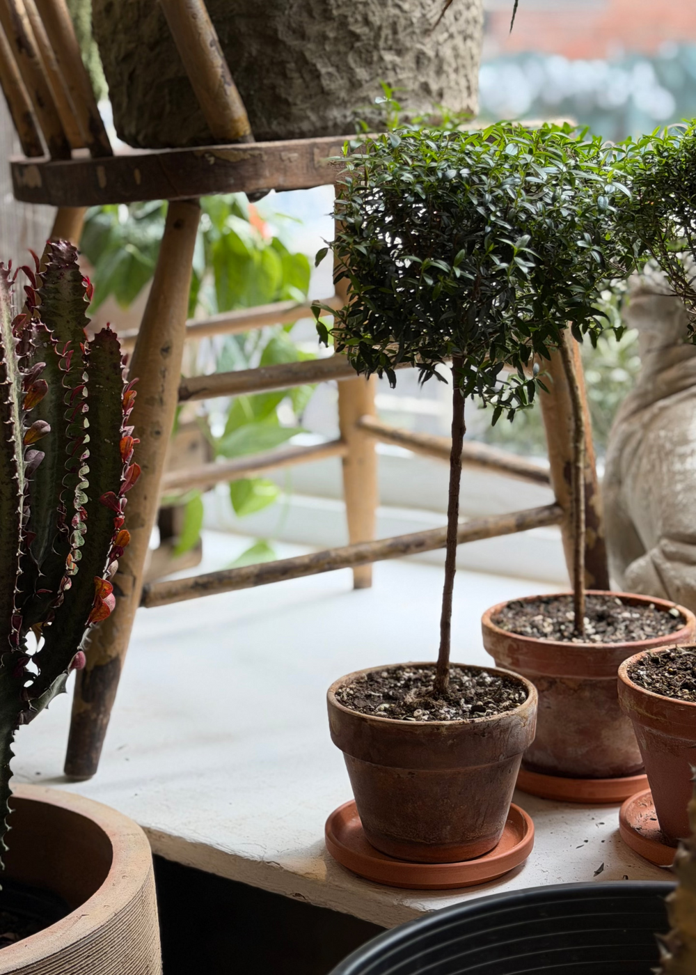 Black Olive trees require bright light and consistently moist soil. The light does not have to be direct, but it must be bright. We recommend watering 2-3+ times per week, but this may change depending on how warm the environment is and how bright the light is. Do not let the soil dry out – keep it moist, but not wet. To help with watering, you could also consider a subirrigation liner, which acts as a self-watering pot and can sit inside a decorative container.